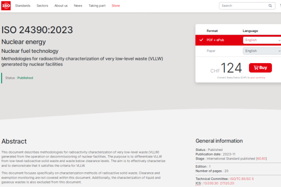 11月30日,由中輻院主導(dǎo)編制的國際標準ISO 24390:2023《核設(shè)施產(chǎn)生極低水平放射性廢物放射性表征方法學(xué)》正式發(fā)布,該標準是由我國在放射性廢物管理領(lǐng)域編制發(fā)布的首個ISO國際標準,是中輻院高質(zhì)量發(fā)展和創(chuàng)建”國際一流”院所的又一重要成果,標志著我國在放射性廢物治理領(lǐng)域的國際標準化工作取得重要突破